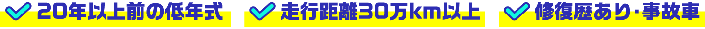 20万キロ、30万キロは当たり前。メンテナンスされていれば、古くても過走行でもしっかり査定いたします。 平ボディ、ダンプ、ユニックなど、働く車なら何でもお任せください。