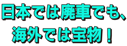 日本で価値がつかない車も、海外では「まだ走れる車」として需要あり。ティーバイティーは世界の流通市場とつながっているため、年式・走行距離に縛られない査定が可能です。